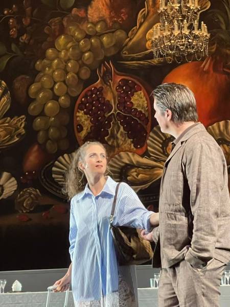 Die überlange Tafel erinnert an das letzte Abendmahl. Vater und Christian an den Kopfenden, gleich Kontrahenten, viel Platz zwischen allen ... und im Geiste und teils als Geist dabei: Linda, die Schwester Christians, die Suizid beging. Christian hält eine Rede, spricht vom sexuellen Missbrauch des Vaters an den Kindern ... Doch das Fest geht unbeirrt weiter ... Helene singt Helge ein Lied: "My heart belongs to daddy", bis ihr die Gesichtszüge entgleisen, doch: das Fest geht weiter. Christian beschuldigt seinen Vater, Mörder seiner Schwester zu sein, doch: das Fest geht weiter ... er bezichtigt seinen Sohn einfach, psychisch krank zu sein ... Statistik: 2024 wurden in 16.354 Fällen des Verdachts des sexuellen Kindesmissbrauchs 18.085 Opfer registriert ... Das Lügengebäude bricht zusammen wie die Tafel, hinter dem abgerissenen Stillleben eröffnen sich neue Abgründe ... eine Inszenierung, die wirklich unter die Haut geht ... mit unterschwellig beeindruckender Musik, einem minimalen, tiefgründigen Bühnenbild und einem klasse agierenden Ensemble!!! Riesenapplaus!!